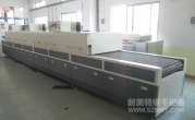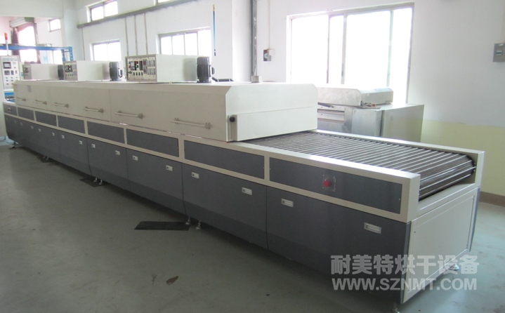 烘干爐部分外形尺寸:總長18米,外寬1.34米,網(wǎng)帶寬1.1米,總高1.22米,進(jìn)料部分長10米,烘干部分長6.0米,緩沖區(qū)長0.3米,冷卻區(qū)1.2米,出料部分長0.5米;
